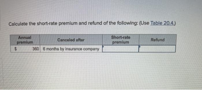 Solved Calculate The Short Rate Premium And Refund Of The Chegg Com